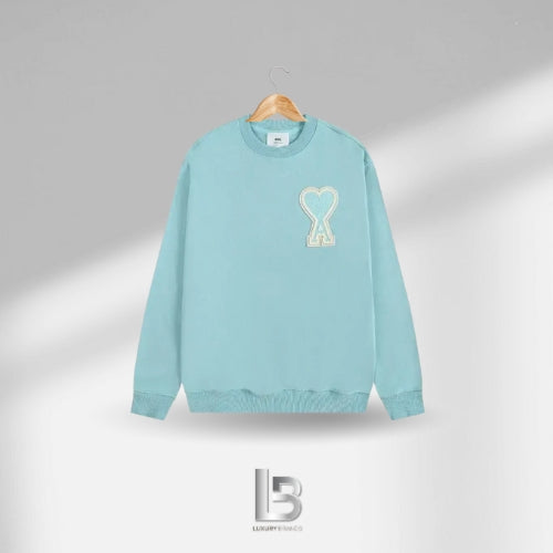 Ami Paris Big Love Light Blue Embroidered Crewneck