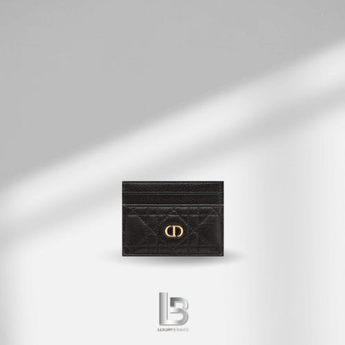 Dior Caro Freesia Card Holder Black Supple Cannage Calfskin