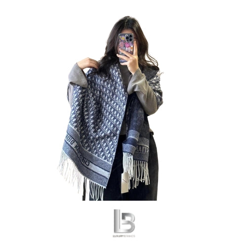 Dior Oblique Scarf Navy Blue Cashmere