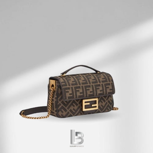 Fendi Baguette Chain Midi - Brown FF jacquard fabric bag